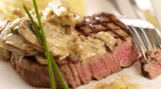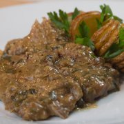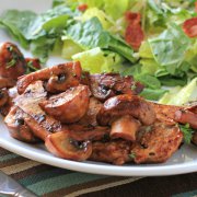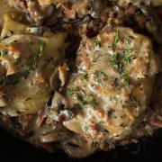 CHICKEN FILLET WITH CREAM SAUCE, MUSHROOMS, BACON