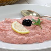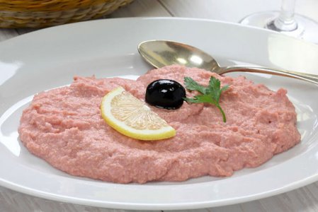 Fish eggs, onion, lemon juice, olive oil